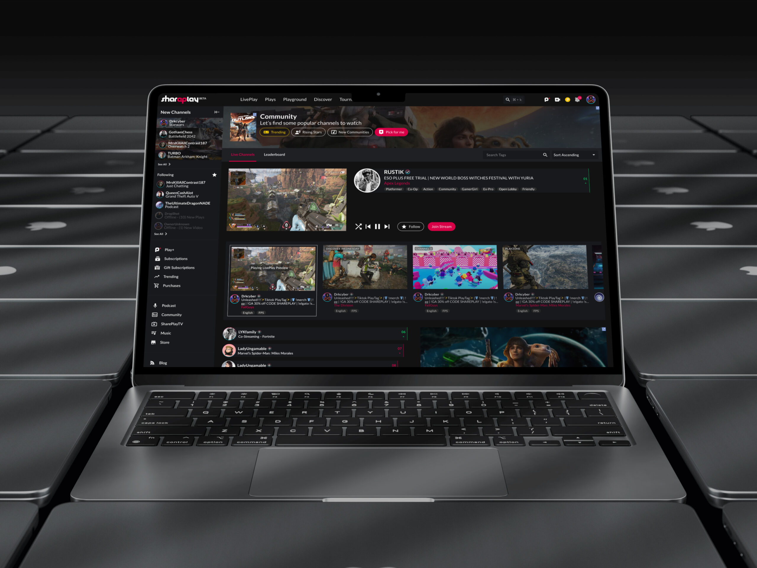 SharePlay is an interactive, AI-powered live-streaming and cross-promotional platform built for today’s creators — from gamers and podcasters to musicians, esports talent, and beyond. Designed with simplicity and innovation at its core.